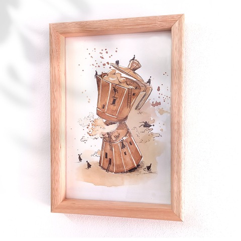En una de mis exploraciones sobre los pigmentos naturales, realicé esta ilustración con café de 25 cm. Cada ilustración es envuelto cuidadosamente para que llegue perfecto a destino
