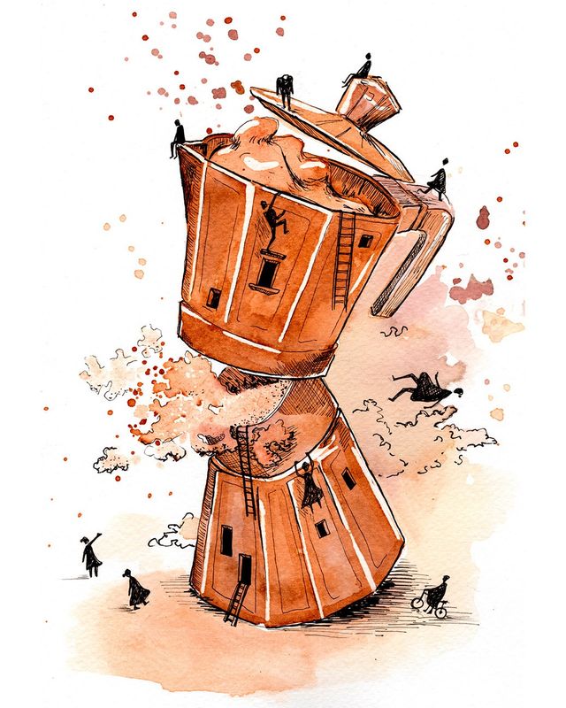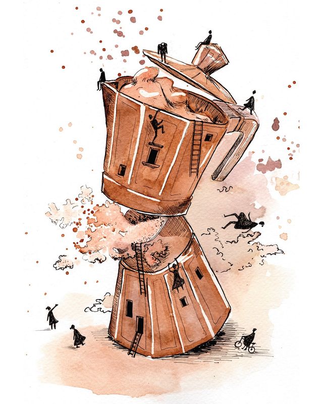 Ilustración original realizada con café y tinta china sobre papel de acuarela. Medidas: 17 x 25 cm. Ver más detalles