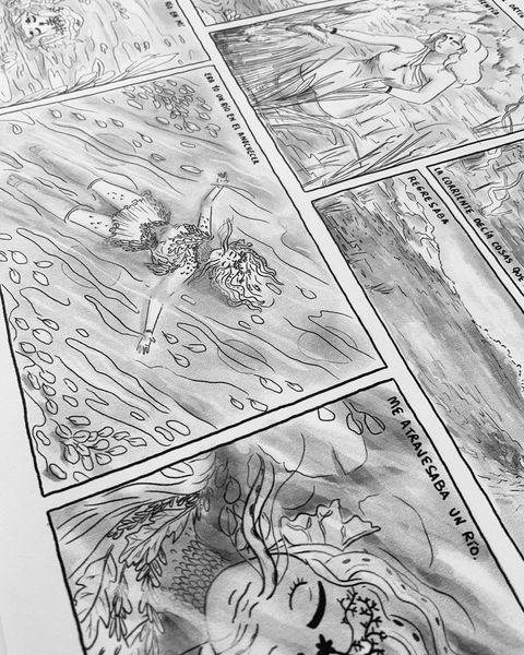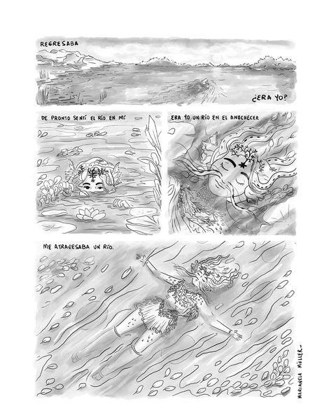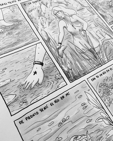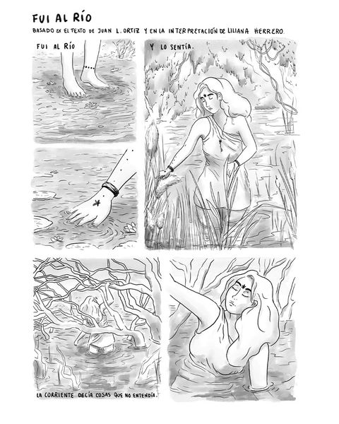 Página de historieta breve basada en el texto de Juan L. Ortiz y en la música de Liliana Herrero. Tamaño plegado: 15 x 21 cm. Papel de 180 gr. Ilustración seleccionada para su publicación en el diario "Tinta Local" Ver más detalles