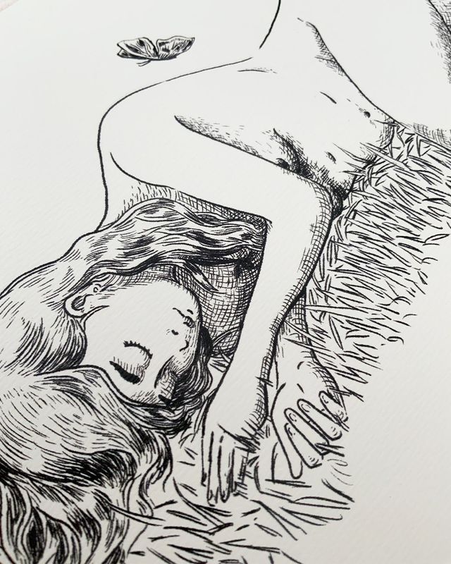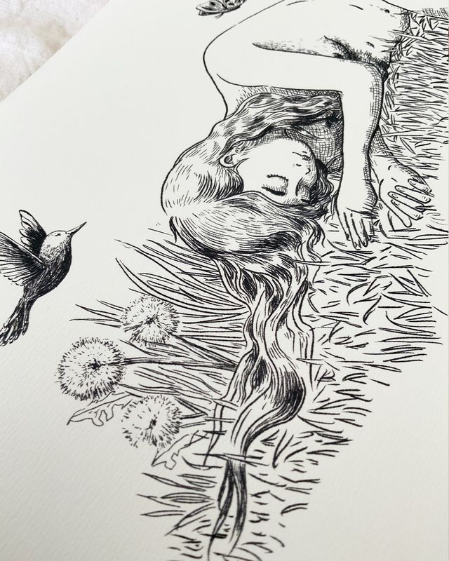 Print en papel especial, dibujo en tinta, 15 x 42 cm Ver más detalles
